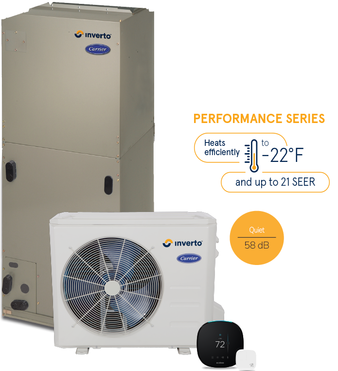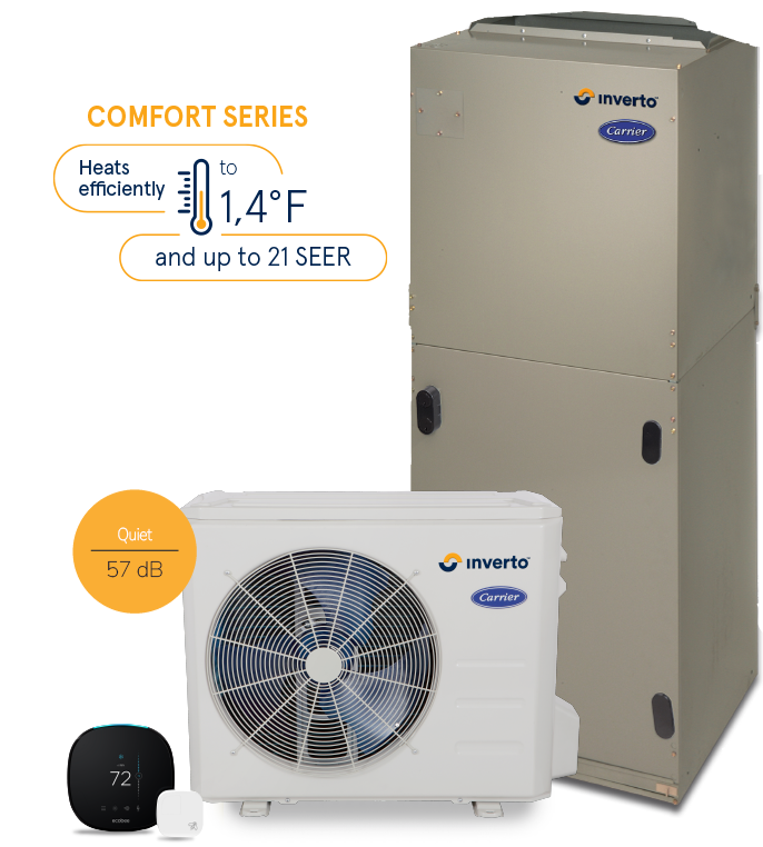 With all these advantages, it’s no wonder that the Carrier® central heat pump with InvertoTM technology is establishing a new industry standard in air conditioning and heating!