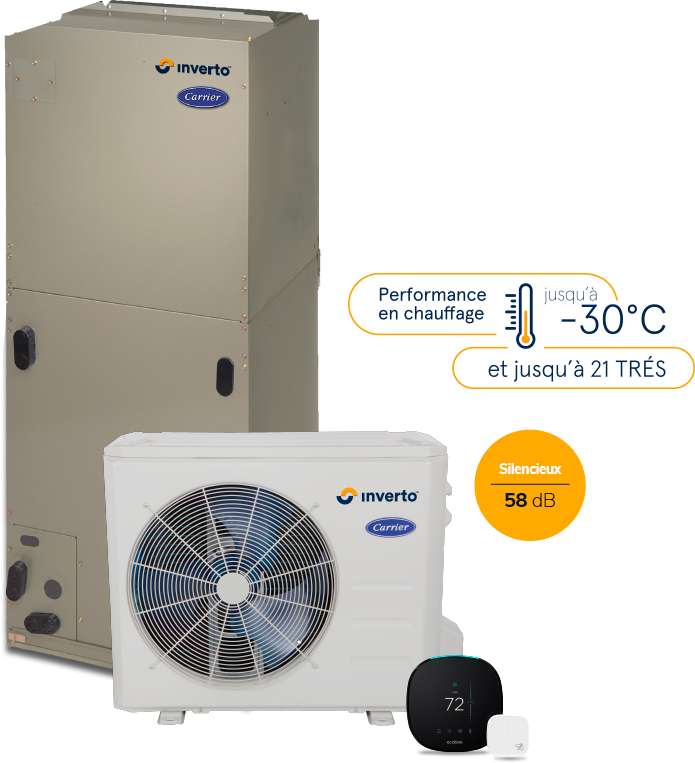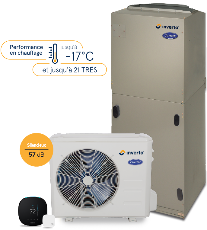 Le système central à la technologie InvertoMC de Carrier® offre un rendement incomparable, surclassant la majorité des thermopompes sur le marché. Ses performances écoénergétiques sont accréditées par des programmes tels que ENERGY STAR et NEEP.