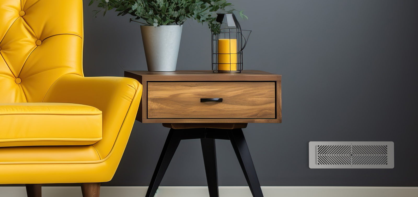 Installé dans le grenier, ce système est presque invisible. Pas de radiateurs ni de plinthes électriques, seulement des grilles discrètes au plafond, ce qui maintient l’esthétique de votre intérieur intacte. Imaginez! Vous n’aurez plus à raccourcir les rideaux pour éviter la plinthe électrique ou à organiser vos photos de famille autour d’une unité de climatisation rectangulaire un brin massive!