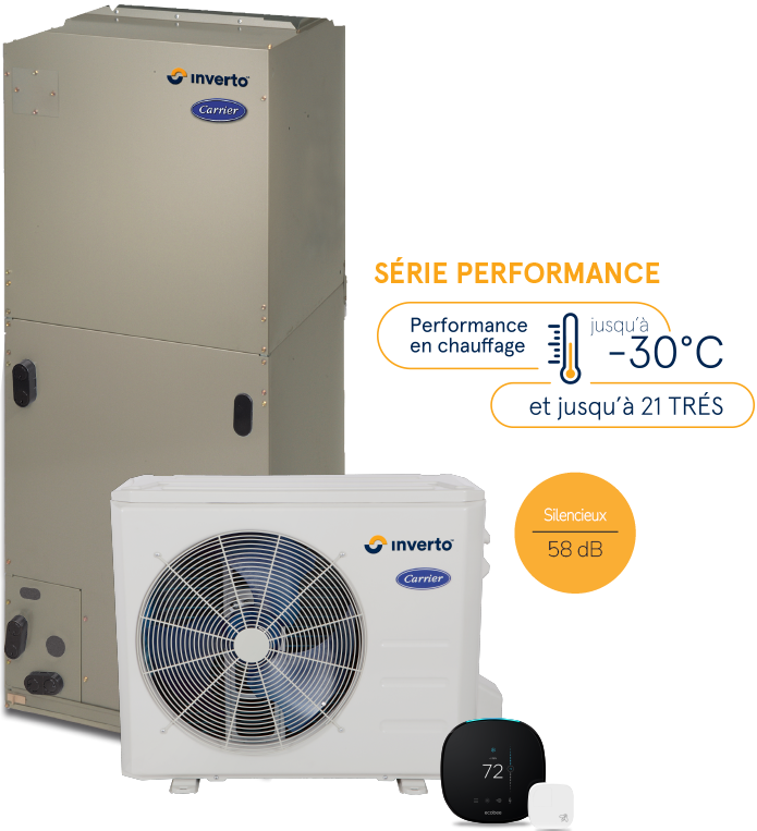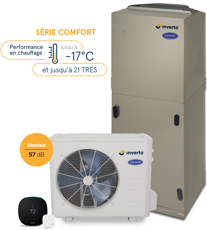 Avec tous ces avantages, il n’est pas étonnant que la thermopompe centrale avec technologie InvertoMC de Carrier® s’inscrive comme étant le nouveau standard de l’industrie en climatisation et chauffage!